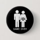 The universal man and woman symbols, holding hands, woman showing a womb/fetus, and with "Game Over" text caption. B/W design, on t-shirts, sweatshirts, cards, gifts.