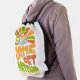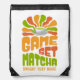 Colorful GAME SET MATCHA Fun Latte Drinker Drawstring Bag with CUSTOMIZABLE TEXT, for drinkers of matcha latte tea who love tennis. The design shows a retro style typography in vibrant colors, with wording that reads GAME SET MATCHA and WORTH PLAYING FOR. This last line is CUSTOMIZABLE so you can PERSONALIZE with your own wording or delete. Matching gifts available.