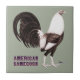A fine specimen of American game fowl! This silver duckwing rooster in sepia tones stands tall and proud.