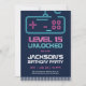 Gamer Boy Level Unlocked Video Games Blue Birthday Invitation