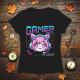 A Cool T-Shirt Design of a Anime Girl Cat with headphones and the text Gamer Girl Time To Level Up.