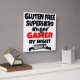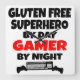 This text design features the phrase "Gluten Free Superhero by Day Gamer by Night" and is perfect for anyone that lives a gluten free life and loves playing video or computer games.