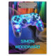 A modern and cool illustration of a see through blue and black plastic video game controller that has your monogram on the digital console panel is set against a neon smoke purple and orange background that has vertical neon stripes as well plus your name below the remote. These are ideal as gifts for your husband, son, nephew, godson or grandchild on a special occasion, their birthday or for yourself.