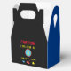 Level up your birthday party with this exciting Gamer Pixel Arcade favor box. Perfect for video game enthusiasts, this favor box is designed with vibrant primary colors against a sleek black background.