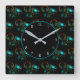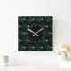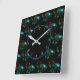 Gamer Retro Neon Pattern Black Square Wall Clock