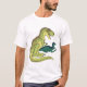 A Tyrannosaurus Rex and a Velociraptor pass the time by playing a video game. This design is available on many products and can be personalized!