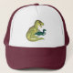 A Tyrannosaurus Rex and a Velociraptor pass the time by playing a video game. This design is available on many products and can be personalized!