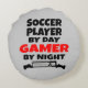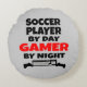 This text design features the trendy phrase "Soccer Player by Day Gamer by Night" and is perfect for any soccer player who loves playing computer games or video games.