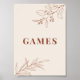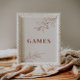 Games sign are characterized by a boho style with floral artwork and neutral earthy and beige colors.