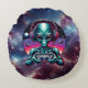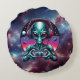 Alien being playing video games with headphones on and controller in hand. Colorful alien ai art.
