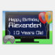 Add your name and age to this personalized plasma tv screen gaming or video game truck birthday party yard sign. Great for a boy's gaming party or other special event for the guys. Black flat screen hd tv, with colorful balloons and a video game handset.