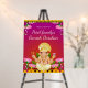 This DIY Ganesh darshan welcome signs template or Indian pooja sign, a fusion welcome sign in traditional elegance, is complemented with florals & leaves, perfect for your Indian Ganesh Chaturthi welcome signs.