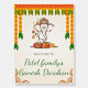 This DIY Ganesh darshan welcome signs template or Indian pooja sign, a fusion welcome sign in traditional elegance, is complemented with florals & leaves, perfect for your Indian Ganesh Chaturthi welcome signs.