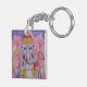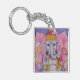 A keychain with my 18" square watercolor pencil painting of Ganesh. Ganesh is a Hindu god. He is the remover of obstacles, patron of arts and sciences, the lord of intellect and wisdom, the god of beginnings, and patron of letters and learning. He holds his own broken tusk in his lower-right hand and holds a delicacy, in his lower-left hand. In one upper arm, he holds an ax, and in the other upper arm, a noose. I have placed him seated in front of a pink lotus flower, as part of a symbol of new beginnings unfolding.