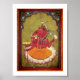 Ganesha getting ready to throw his lotus. Basohli miniature. "Attired in an orange dhoti, his body is enitirely red. On the three points of his tiny crown, budding lotuses have been fixed. Gaṇeśa holds in his two right hands the rosary and a cup filled with three modakas (a fourth substituted by the curving trunk is just about to be tasted). In his two left hands, Gaṇeśa holds a large lotus above and an axe below, with its handle leaning against his shoulder. In the Mudgalapurāṇa (VII, 70), in order to kill the demon of egotism (Mamāsura) who had attacked him, Gaṇeśa Vighnarāja throws his lotus at him. Unable to bear the fragrance of the divine flower, the demon surrenders to Gaṇeśa."