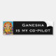 A bumper sticker featuring an image of Ganesha with the words "Ganesha is my co-pilot".