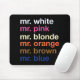 Meet the team of skilled gangsters - Mr. White, Mr. Pink, Mr. Blonde, Mr. Orange, Mr. Brown and Mr. Blue. Colorful typography based graphic design tees, sweatshirts, hoodies and gifts for movie fans and criminal masterminds.
