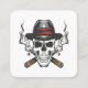 Gangster skull with fedora hat square business card