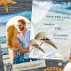 Save the Date card featuring a romantic design with gannets on a beach. A wedding veil with pearls and lace add a festive touch. On the back is space for your own photo. You can also use the QR code template to link to your own website.