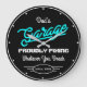 Dad's garage or any name garage turquoise effect digital graphic on a black background. Just use the customize this template option to change the text. Funny proudly fixing whatever you break slogan typography with any since date. Just choose the hand color and size.