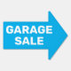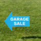 Bright blue arrow sign with the words "GARAGE SALE" in bold white text on both sides helps everyone find your event. You can customize the text and/or change the mounting option in the sidebar.