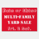 Yard sale sign in bright colors with four lines of custom text. Bright purple on one side and red on the other. The same text will be printed on both sides. Choose any option, such as "huge, multi-family yard sale" with days. Or it could say, "Rain or shine, neighborhood garage sale - today!" Customize line by line for your needs. I know from experience that bright, easy to read signs will help bring the crowds, but these colors can easily be changed in the "customize further" area. Choose only the rectangular shape in either size. If no specific dates are mentioned, this sign can be reused over and over!