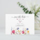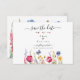 This vibrant and enchanting save-the-date wedding card is a celebration of love, blending bohemian flair with the beauty of a colorful garden. The captivating watercolor illustration features a profusion of wildflowers in hot pink, sunny yellow, refreshing blue, and delicate lavender hues, creating a lively and romantic atmosphere. To personalize this further, click the "customize further" link and utilize our design tool to adjust this template according to your preferences.