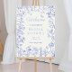 Welcome your guests with elegance using this Blue Whimsical Garden Chinoiserie Bridal Shower Welcome Sign. The stunning Chinoiserie pattern with whimsical garden elements in shades of blue creates an inviting and sophisticated entrance to your bridal shower. The intricate florals and bird motifs add a touch of serenity, setting the tone for a day of celebration. It's not just a guidepost, but also a stunning piece of decor.