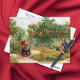 A fine art postcard with the post-impressionist painting by the Dutch artist Vincent van Gogh (1853-1890), Garden with Courting Couples - Square Saint-Pierre (1887). A landscape of a park with flowering trees and a paved path.