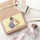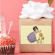 Celebrate the Spring with this lovely image of a sweet little garden Elf and its flowers. From a vintage postcard from 1919, originally an Easter card, this sweet little card shows a beautiful young girl with dark hair, purple dress, and flowers in her hair, accepting a tiny little daffodil from a little garden fairy she finds amongst the daffodil flowers. The Little fairy holds up the flower to her. He is standing on top of a little daffodil as he reaches the little flower to her outstretched hands. What a beautiful vintage fairy easter gift for your loved one! The card has a lovely yellow pattern background, which sings of Spring and new life!