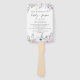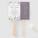Beautiful watercolor garden foliage and flowers in dusty pastel shades of purple, white, pink and green, back features solid dusty violet background, wedding program fans. Personalize text, customize font style, color and size.