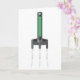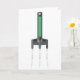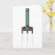 The humble garden fork. It is an essential piece of gardening equipment that everyone should have. This design is of a handheld garden fork. It has a green handle coming down to the three prongs that you are used to on a fork. This garden fork design looks great on these greeting cards