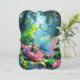 A tiny girl and a butterfly with iridescent wings perched on a giant flower in a lush jungle, accompanied by a colorful toucan. Large leaves and vibrant flowers surround them, creating a magical, whimsical scene. Digital Art