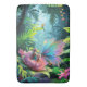 A tiny girl and a butterfly with iridescent wings perched on a giant flower in a lush jungle, accompanied by a colorful toucan. Large leaves and vibrant flowers surround them, creating a magical, whimsical scene. Digital Art