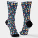 Garden Gnomes and Flowers Navy Blue Patterned Socks
