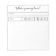 Notepad for the Gardener. Asks the question, "What's growing here?" Enter the name of plant, date, sun needs, watering needs, and your own notes to help get your plants or crops off to a good start.