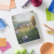 I was super excited when I got my cover in. It is attached by a magnet across the edge. I don’t think it will be very protective but it is very cute. I’m going to keep my iPad in a sleeve and use this face cover while I have it out. It folds to create a tilt for better viewing and to keep the iPad at a slight angle for typing. The colors are bright and it is fun. I’ve really enjoyed it. The personalization looks like amazing. It is the same color as the picture and is the same brightness. Well done! Very nice.