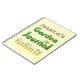 Personalized garden journal with painted garden mosaic lettering, decorated with flowers and a watering can with a pale lemon background