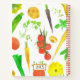 A garden journal that can be used as a planner and logbook decorated with a variety of colorful vegetables illustrated with watercolor. On the front and back are text areas that you can edit to fit your needs. The inside pages and spine color can be changed as well.