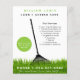 A modern grass rake business design for lawn care specialists. A minimalist lawn rake personalized logo business flyer for lawn care, gardening and landscaping businesses. A simple and professional way to introduce your business. Personalize your details to create your own unique business flyer.