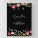 This garden multicolor wildflower wedding open bar sign is perfect for a rustic wedding. The design features a multicolored assortment of pink, blush, purple, yellow, white, violet, red, burgundy wild flowers in a black background.