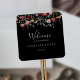 This garden multicolor wildflower wedding welcome square sticker is perfect for a rustic wedding. The design features a multicolored assortment of pink, blush, purple, yellow, white, violet, red, burgundy wild flowers in a black background.