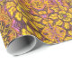 Wrapping paper featuring bohemian pattern in golden yellow and violet colors. Whimsical floral arabesque - fantastic flowers and woman faces.