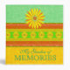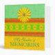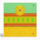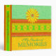 Garden of memories binder. Colorful textured stripes of spring colors -green, yellow, and orange---with orange and yellow daisy-like flowers. Cover and spine title text reads "My Garden of Memories" --all text is customizable. Cheerful and bright memory book / photo album.