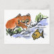 Garden Pond and Curious Kitten Postcard