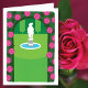 Image of a whimsical formal garden. Through the rose trellis, is a statue in the distance that sits atop a small pond. Sculptured evergreen plants form the background. This illustration is a digital composition of my hand-painted paper. Inside: Blank. Suggested for National Garden Meditation Day on May 3.