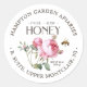 Personalize with your business name, address, and honey weight. Central illustration of a vintage rose illustration by Belgian artist Pierre Redoute. Western honeybee photo. Ideal for beekeepers and honey sellers. Common honey net weight conversions: 8oz (227g), 12oz (340g), 16oz (454g), 32oz (907g), 5lb (2.27kg).