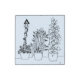 Adorable garden pots and flowers in black ink design on stone refrigerator magnets.