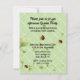 Garden themed party invitation, with a green and white lattice pattern background, with graphics of pretty green vines and ladybugs. Personalize the custom text for your event.
