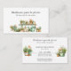 This business card features a watercolor illustration of garden pots, plants, tools, and a watering can. Designed for plant shops, florists, landscapers, or garden-related businesses, it highlights a nature-focused and handmade style. A professional way to share your contact details while reflecting your work with plants and gardening.